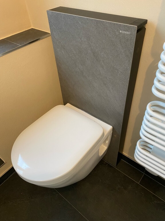 Ein besonderes Highlight ist das Dusch-WC der Marke Geberit, das höchsten Komfort mit moderner Technik vereint – ein echtes Plus in Sachen Hygiene und Lebensqualität.